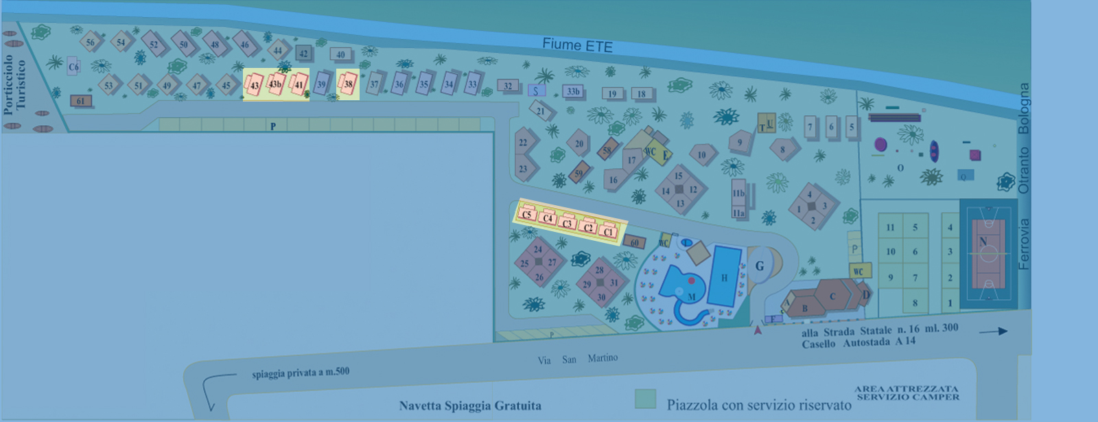 21mq. - 38, 41, 43B, 43, C1, C2, C3, C4, C5 con aria condizionata € 10,00 al giorno o 50,00 a settimana